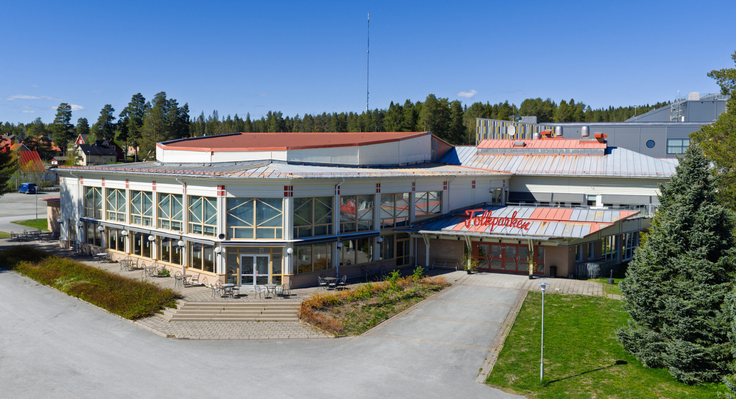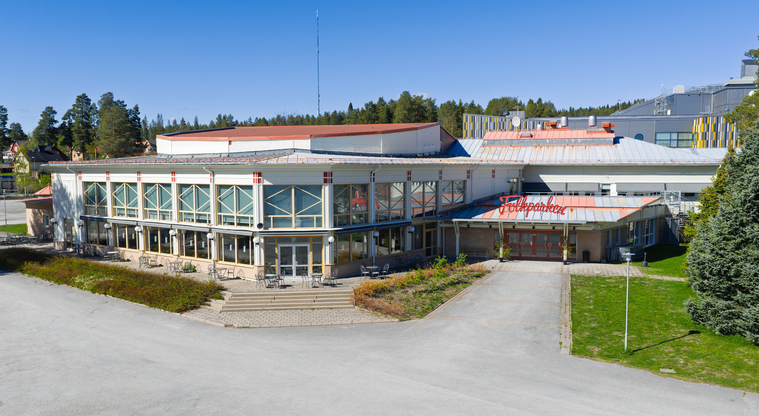 Med tiden blev det lite för trångt och 1973 byggdes själva huvudbyggnaden. Genom det kunde Folkparken utöka sitt erbjudande, med mötesverksamhet och andra inomhusaktiviteter. 1992 gjordes sedan en omfattande utbyggnad då bland annat vår festsal Kronan lades till.